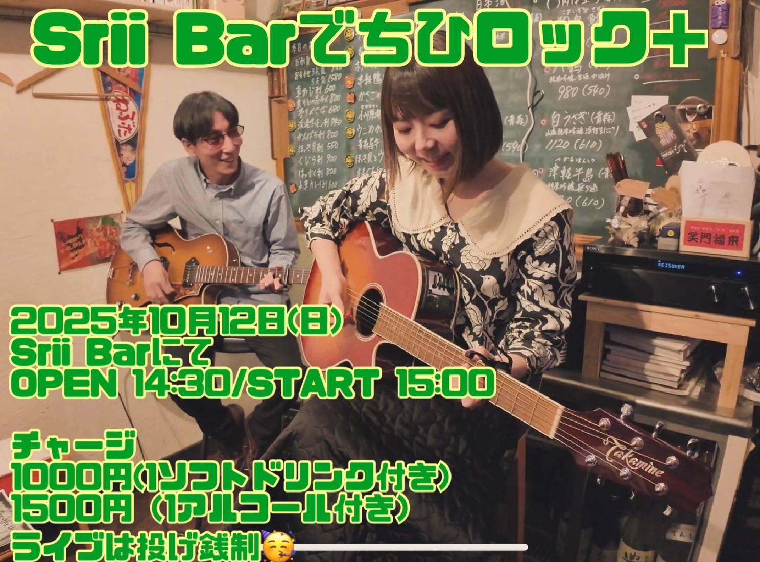弾き語りライブ「Srii Barでちひロック+」開催!!