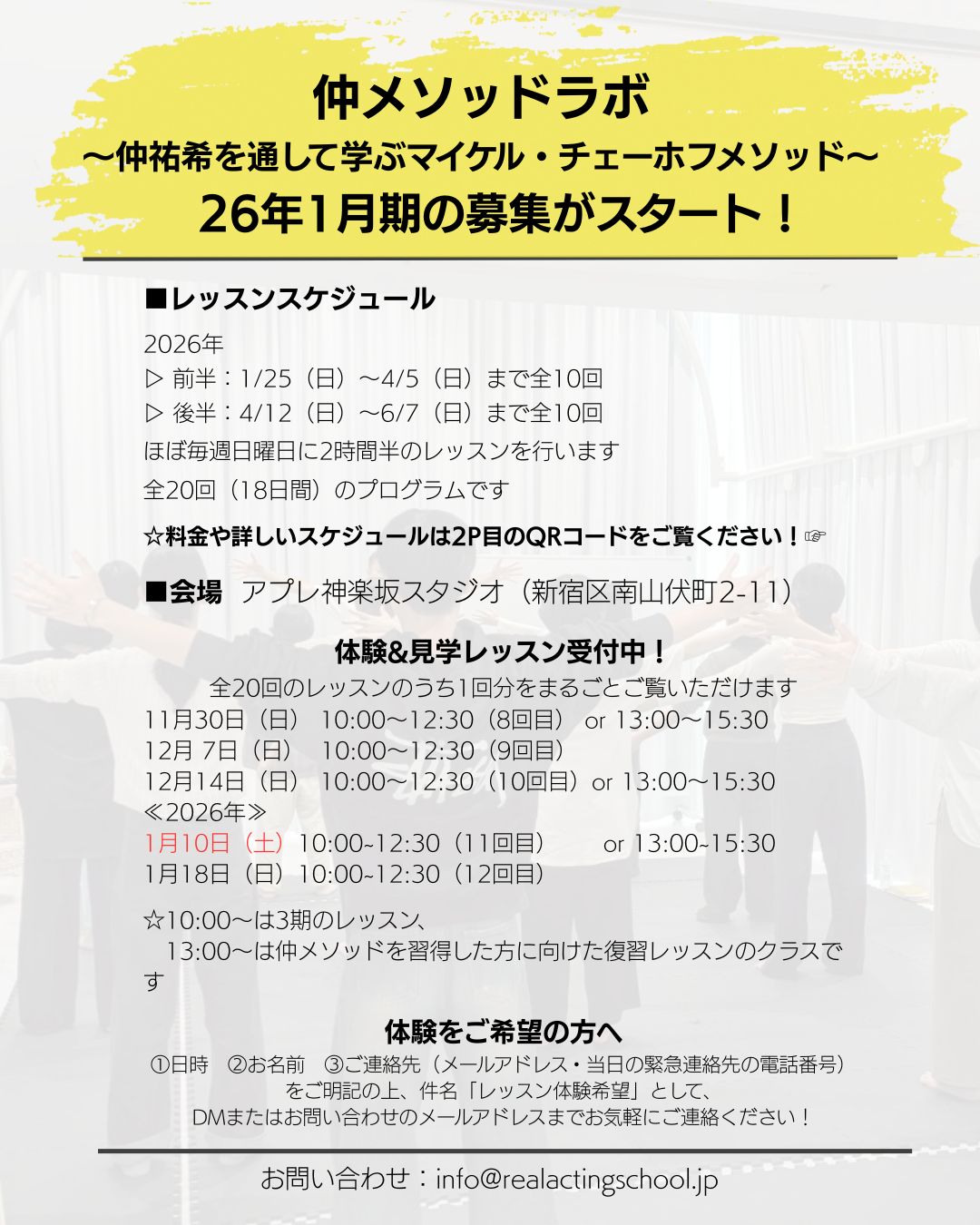 仲祐希氏による『マイケル・チェ―ホフラボ』2026年1月期募集