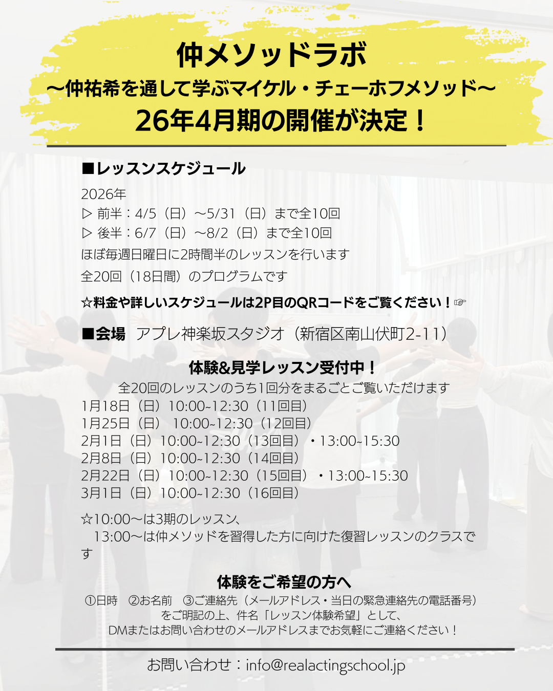 仲祐希氏による『マイケル・チェ―ホフラボ』2026年4月期募集